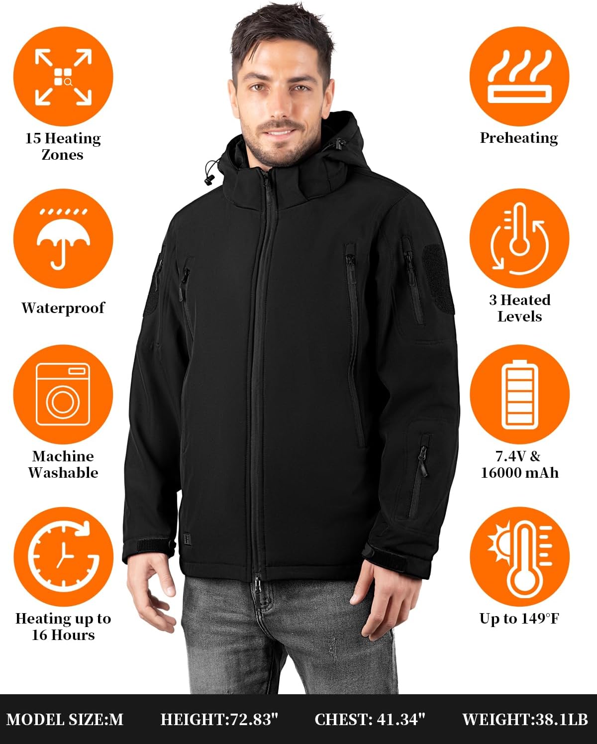 Men's Heated Winter Jacket - Soft Shell Coat with Electric Heating and Detachable Hood for Outdoor Adventures