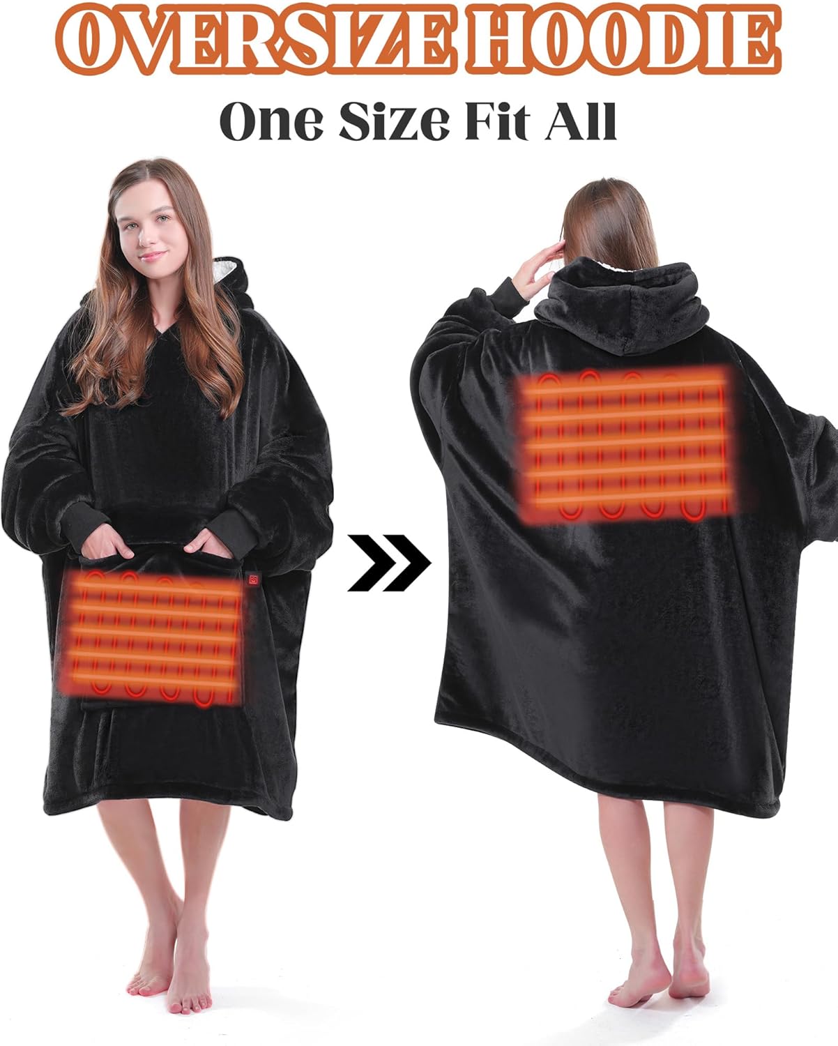 Stay warm wherever you go with this cozy, oversized heated hoodie—comfort and warmth are always at your fingertips!